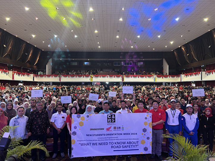 Bridgestone Malaysia’s road safety initiative has taken significant strides in promoting awareness, education, and tangible solutions to improve road safety. One of the key approaches we’ve adopted is leveraging academic and corporate networks to amplify our reach and influence across various platforms. A prime example of this is our collaboration with the University Sains Malaysia (USM), which has opened doors to a range of impactful public engagements and partnerships beyond the scope of our original contract. The aim of this partnership is to contribute to a reduction in death and injury from road crashes for students travelling to and from the University. Our program provides our community with the necessary knowledge and skills to navigate the roads confidently and responsibly through the implementation of a comprehensive road safety input and interactive events.